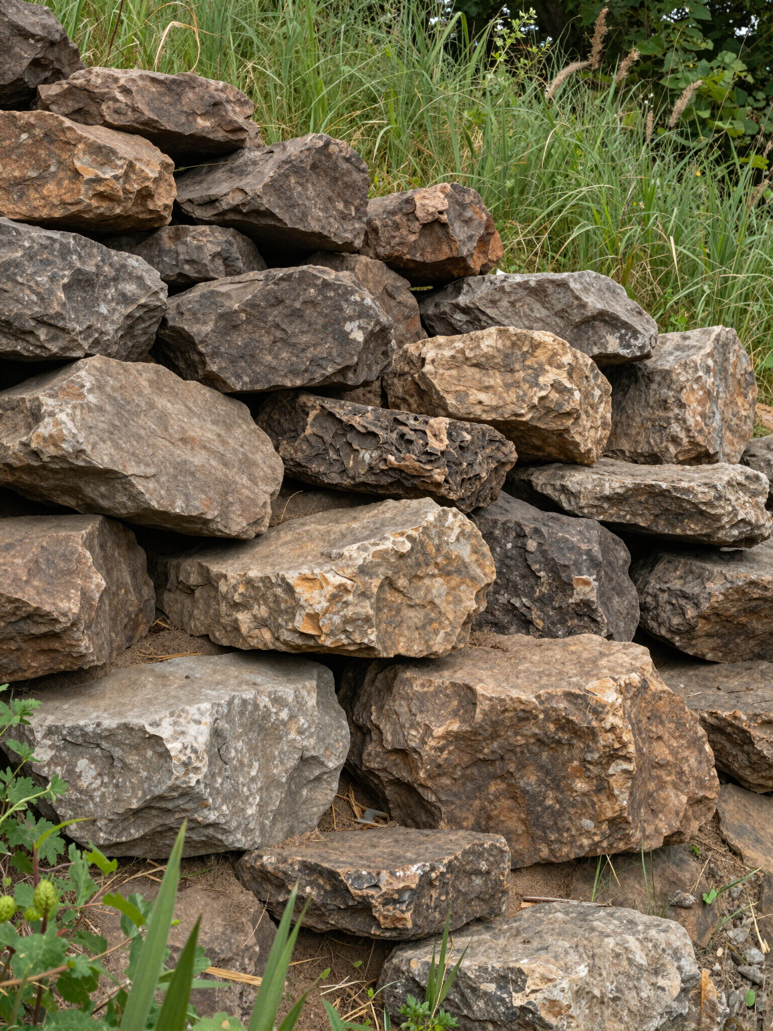 Using limestone or fieldstone provides a timeless look. Each stone is hand-selected and placed to create a sturdy, gravity-based structure that blends perfectly into heavily wooded or traditional landscapes.