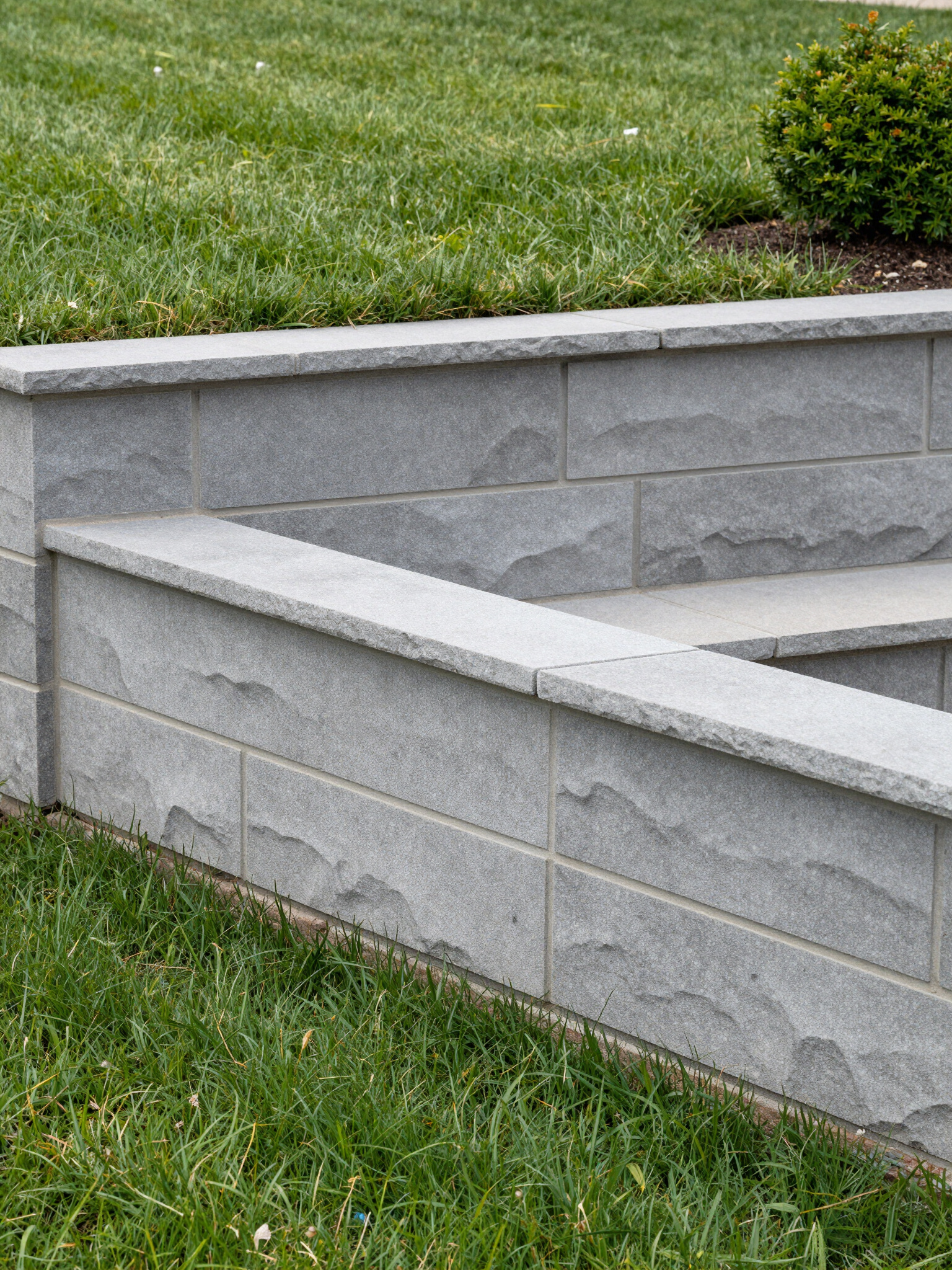 The final course is glued with high-strength masonry adhesive. We backfill the top with topsoil or decorative rock and restore any disturbed turf, leaving the site clean and functional.