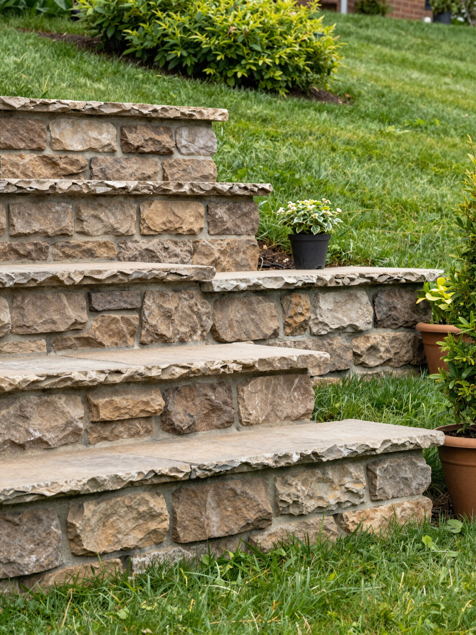 Large granite boulders offer extreme durability for significant grade changes. These walls provide a rugged, maintenance-free solution that handles heavy water runoff without shifting or eroding over time.